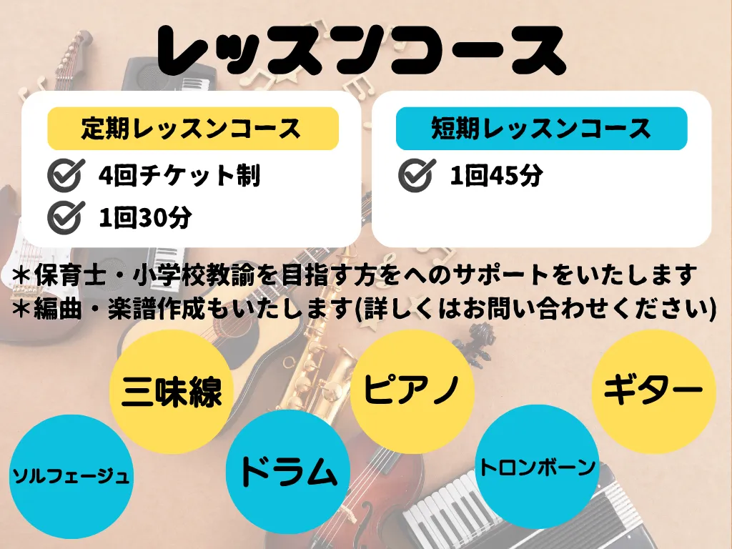 ※レッスンで使用するドラムは大人用のため、生徒さんの体格によってはドラム”セット”ではなく一部を使用したレッスンとなる場合があります。体験レッスンの際にご相談させていただきます。