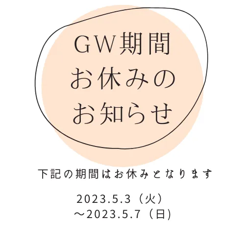GW期間中のお休みのおしらせ StudioNAKSは、ゴールデンウイークの下記期間をお休みとさせていただきます。お休み中にいただいたお問合せについては、5月8日(月)より順次確認・対応をさせていただきますのでご了承ください。<お休み…